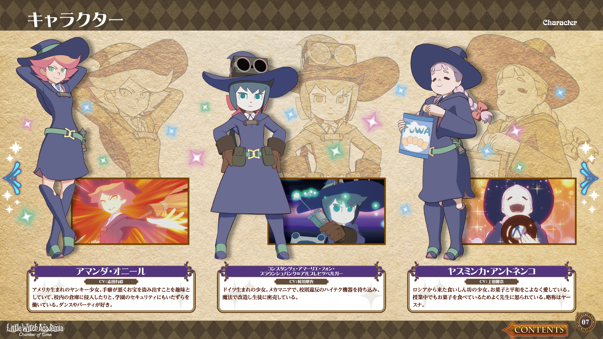 —Amanda's description from Little Witch Academia: Chamber of Time Electronic Manual.[7] | ||