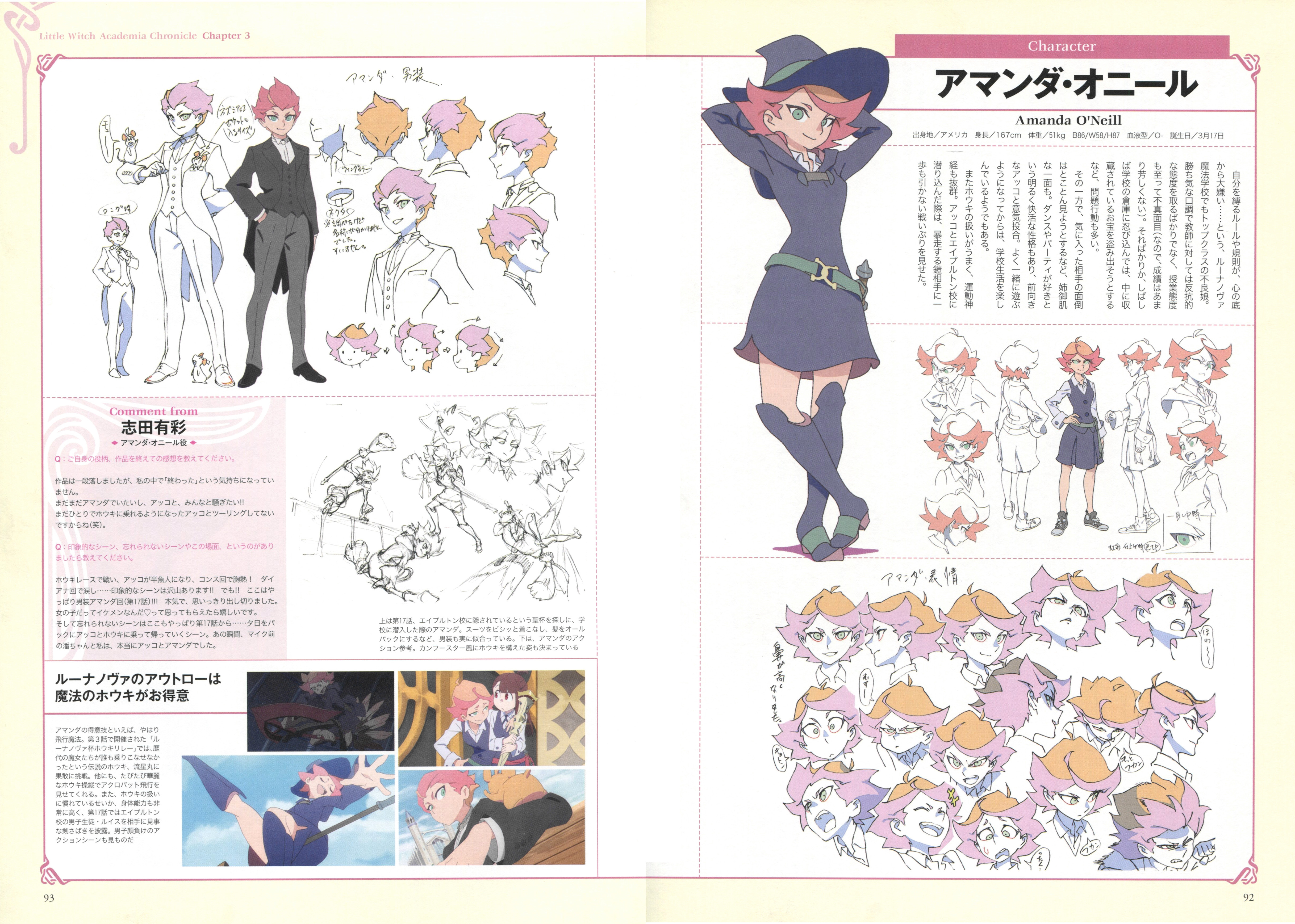 - According to Shuhei Handa in an interview during the talkshow that took place after the screenings for episode 22-25 in TOHO Cinemas in Shinjuku on June 23, 2017, he found Amanda to be one of the easiest characters to write, as opposed to Constanze. He also admits Amanda being easy to draw just as Akko being amusing to draw as expected from her comical expressions, though he had some difficulties with Constanze by contrast.[23][24]