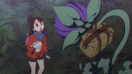 After Croix manages to accumulate enough emotional energy to activate the Noir Rod, she transforms the rod into a jet and sets off for Arcturus Forest, leading Ursula to rehash and jump into the jet as it is about to take off. Akko and her friends, who are returning to Luna Nova Magical Academy using the ley line stream, fall into the forest when the ley line stream darkens and disappears.