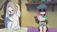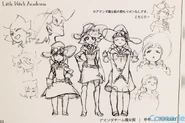 Kai Ikarashi's drawing of Ursula alongside Akko and co. in different activities by Kai Ikarashi for A Believing Heart Is Our Magic (page 15)