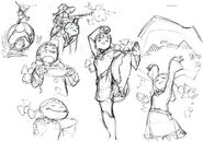 Sketch of younger Ursula, Constanze, and Diana in different hairstyles alongside younger Croix by Shiori Miyazaki