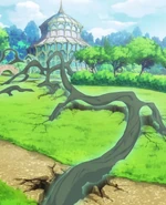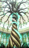 The Jennifer Memorial Tree is the central tree of the botanical garden of Luna Nova Magical Academy, and also a memorial to Jennifer, a renowned, powerful witch. According to the legend, Jennifer transmitted her spirit to this tree to see how Luna Nova will grow, which can explain why the tree has her face.
