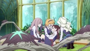 For some reasons, Jennifer Memorial Tree wilted and neither Ursula, nor Finnelan nor Holbrooke know its cause. Noticing the situation, Diana, Hannah, and Barbara decide to do what they can while Ursula consults with books in Luna Nova Library and both the strict professor and the headmistress tending to other business at hand. Using one of spells passed down throughout generations of her family, Diana attempts to revitalize the Tree and seemingly succeeds, prompting Hannah and Barbara to tell the professors. Unknown to the two however, the spell causes the Memorial Tree's roots to violently emerge from the ground instead, revealing the cause of its decline in from of Pappiliodya chrysalises. The incident also caught the attention of Akko, Lotte, and Sucy who happen to play with Chariot cards nearby, prompting them to enter the scene. Horrified by such sight and unaware with their true nature, Diana attempts to blast the parasites one by one despite Akko's protests. It takes her blasting Akko by mistake that the heiress eventually stops and listens to the brunette. Just then, Shiny Rod, which she initially assumed to be a flawless replica of the real thing, suddenly glows by Akko's apparent desire to help hasten the chrysalises' growth without harming Jennifer Memorial Tree in the process. Thus, under Diana's guidance to properly recite the spell written in Pappiliodya Card, Akko magically hatch every Pappiliodya chrysalises, saving Jennifer Memorial Tree and allowing the swarm of new Pappiliodya to fly out of the Memorial Garden for new nesting grounds. Due to Akko, Lotte, and Sucy already left to accompanying the newly matured Pappiliodya swarm, Diana ended up receiving the credit from returned Hannah, Barbara, Finnelan, and Holbrooke both for aforementioned miracle and Jennifer Memorial Tree's restoration, much to the heiress' dismay.