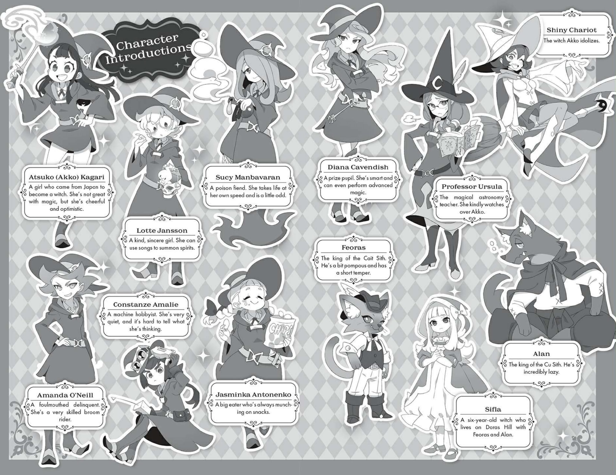 The chapter begins with Akko recounting how Shiny Chariot inspired her to become a witch and subsequently enrolling at Luna Nova to learn magic despite her mundane background since it was the very academy her role model used to attend. To her dismay, however, Luna Nova's classes proved to be duller than expected and Sucy using her as guinea pig to test her experimental poisons and potions at daily basis in addition of her own difficulty in casting even simplest of spells don't help either. Her latest predicament was succumbing to Sucy's sleeping potion with an eyedropper right in the middle of magical history class, much to Finnelan's fury that the strict professor gave her a detention in form of a homework where she must copy the class' studying materials from chapter 1 to chapter 3, which is 40 pages worth.
